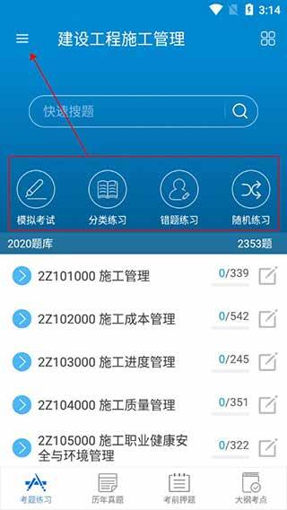 3、可以看到建筑工程管理与实务2020题库拥有2334题,包括2A310000建筑工程施工技术,2A320000建筑工程项目施工管理等;