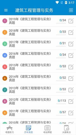 4、如果觉得不够,还可以选择历年真题,这里有2007年到2019年每一年的考试和测试题;