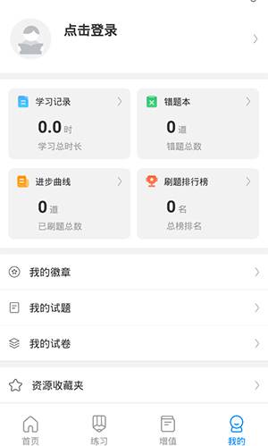 5、点开我的,可以查看自己的学习记录、错题本、刷题排行榜、进步曲线等。