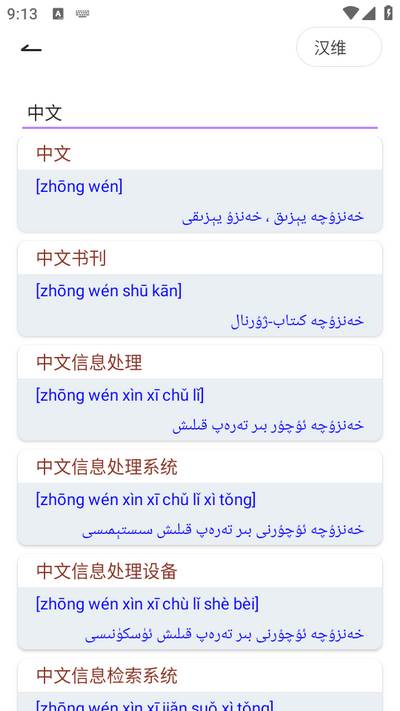 1、内置五种词典:本应用内置了双向的维汉词典、维英词典和维语详解词典共五种离线词典