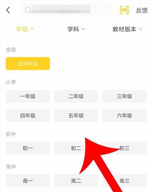 点击搜索栏打开新的页面后,因为不清楚教材的相关信息,可以通过分别点选年级、学科和教材版本的方式来缩小搜索范围