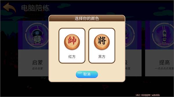 3、选择你想要挑战电脑陪练的难度和象棋颜色(红色一方先行)。
