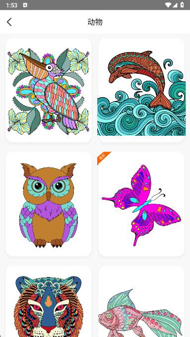 1、打开花花涂色,主页可以选择各类绘画进行涂色