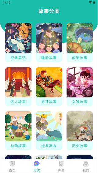 2、分类:多种不同类型故事精准分类;