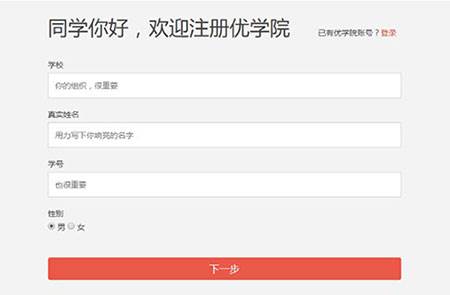 登录优学院网站首页(http://www.ulearning.cn),点击右上方【注册】按钮,进入注册页面。