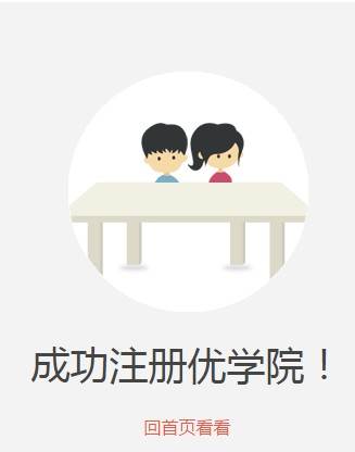 3、待看到“成功注册优学院!”的提示后,请您牢记用户名和密码。