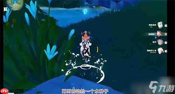 9、随后获取场景中的水种子,并将其带回刚才晶体所在的位置使用。