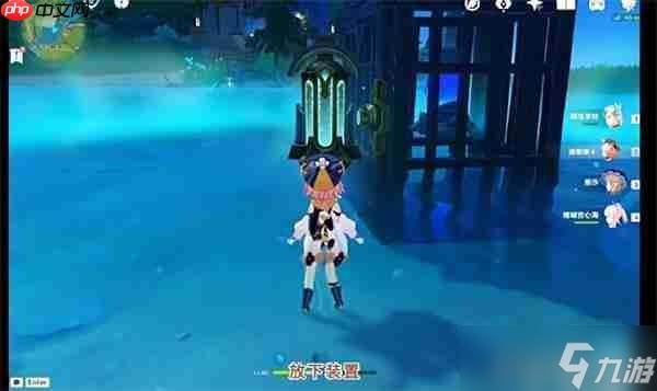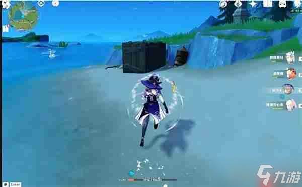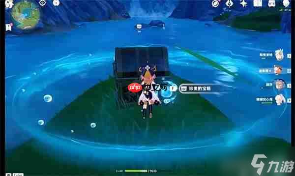 3、击破花朵后,会生成一个水元素晶体,靠近并选择【移动】选项,晶体将自动漂移至宝箱所在位置附近。