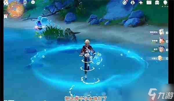 4、沿着路径接近宝箱,途中会发现两只小水珠守卫着另一个水元素晶体。击败它们后,再次移动该晶体。