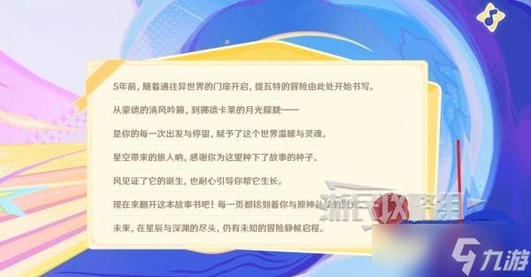 活动奖励:完整观看全部回忆页面后,旅行者可以领取原石*150。在任意页面对任意他人弹幕点赞,即可获取原石*30。完成一次数据回顾分享,可获得摩拉*20000;发布一张“我的手账”可获得祝圣油膏*5;发布一条弹幕可获得大英雄的经验书*10。游戏内奖励将通过游戏内邮件发放,邮件有效期为30天,请及时领取。该网页活动仅供娱乐,与游戏内实际情况无关