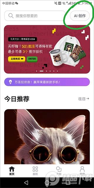 想用无界版图app进行ai绘画,只需要打开app,进入首页点击屏幕最上方右侧的 “AI创作”