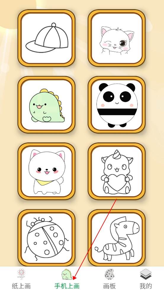 4、除了自己在纸上画,也可以选择软件功能里的“手机上画”,就可以跟引导在手机上作画啦!