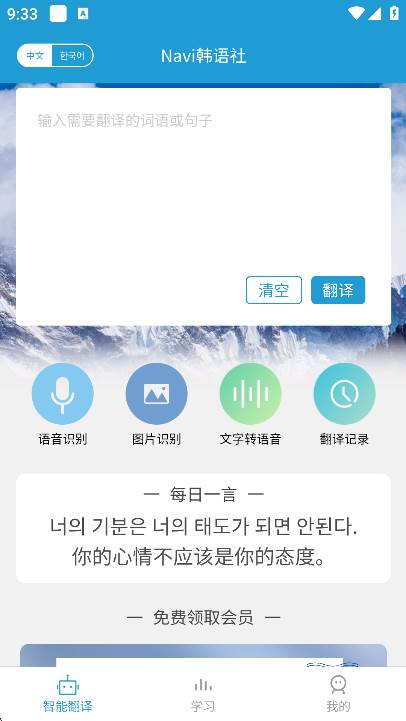 2、韩语语音翻译——智能识别语音并快速翻译,轻松实现韩语无障碍对话交流;