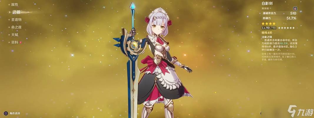 白影剑的被动效果需通过普攻或重击触发,叠满4层需2秒,持续6秒。实战中建议开战前先普攻叠满被动再释放元素爆发,以最大化攻击力加成。由于诺艾尔的元素爆发大扫除会将防御力转化为攻击力,白影剑的双属性增益能显著提升开大后的输出上限。高防御力也强化了护盾厚度和治疗量,使诺艾尔在攻防两端表现均衡。若队伍缺乏充能角色,可搭配充能沙漏或队友缓解大招循环压力。