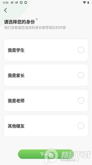 1、首先需要先下载本站提供的app,然后打开,选择自己的身份进入软件。