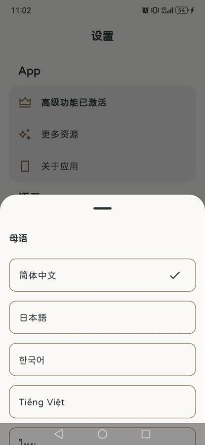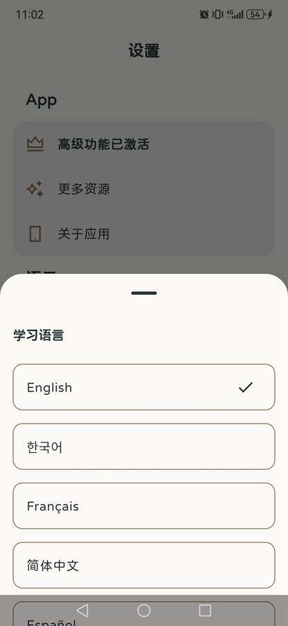 1、点击右下角设置按钮,选择需要学习的语言和母语