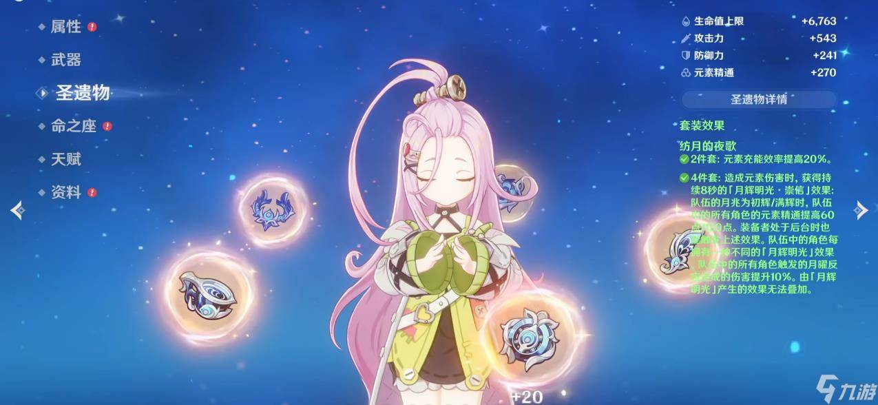 别死磕!先用宗室 4 过渡,或者 2+2(纺月 2 + 水仙 2),保证充能和精通达标,等树脂够了再慢慢刷。圣遗物优先词条对,套装效果其次!