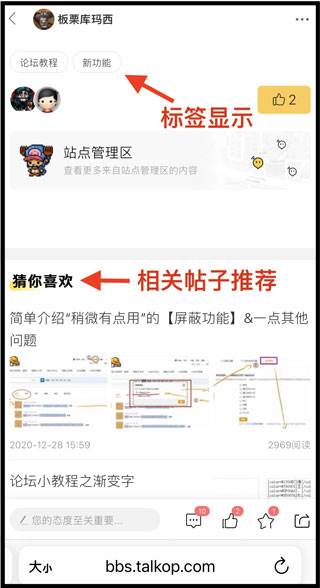 1、「标签」与「相关帖子」功能会以“猜你喜欢”的方式出现~