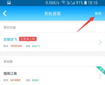 切换服务器功用并不代表该账号数据搬迁到该服务器,想要搬迁数据至该服务器则需经过【移民】来完结。
