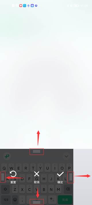 5、点击之后为下方效果,我们拖动键盘四周的边框即可调整键盘大小