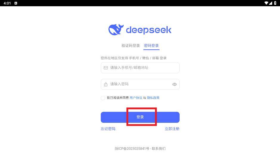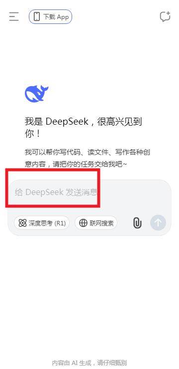 进入首页后,点击给deepseek发送消息