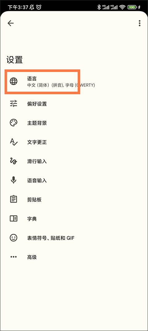 1、首先进入谷歌键盘gboard软件,点击最上面的语言