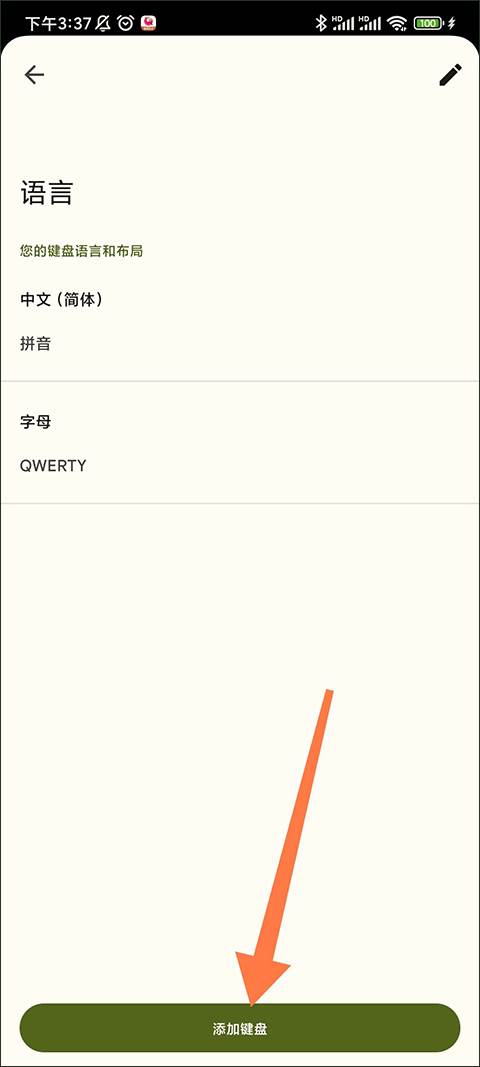 2、进入到语言界面可以看见我们现在设置使用的2款语言,这个时候点击最下方的添加键盘按钮