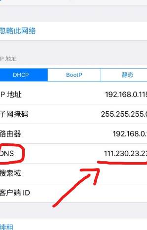 3、进入WIFI的IP详细地址后,找到DNS,并把它改成111.230.23.23。