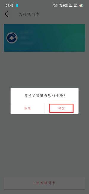 4、然后会弹出一个“确定要解绑银行卡吗”的提示窗口,点击【确定】即可解除银行卡绑定;
