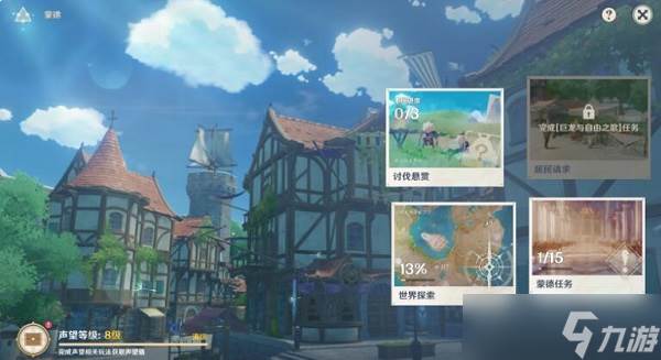 6.也可以领取“世界探索、蒙德任务、璃月任务”来提升声望值,声望值的提升可以解锁特殊城市功能;