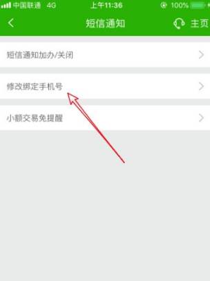 在短信通知页面,第二项即为修改绑定的手机号了,我们点击它
