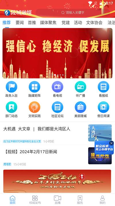 “陵城融媒”APP内设要闻、党建、小康、党史、活动、媒体走基层、灵动、东方朔研究等栏目,做到重大新闻及时推、身边故事精准推;开设了视听专栏,设有新闻、竖屏、直播、动漫等音视频栏目,做到动态看新闻、随身听新闻;APP的“入驻号”板块横向融合了区各党政新媒体,纵向延伸至街道、社区、部门,提供独立定制频道,最大限度展示全区上下工作举措和发展成就。