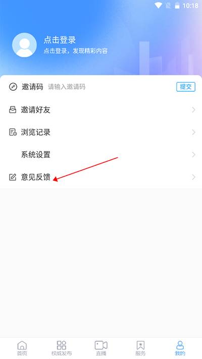 2、在我的界面内,找到并点击“意见反馈”;