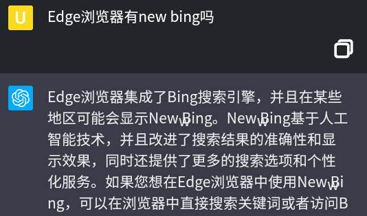 New Bing基于人工智能技术,并且改进了搜索结果的准确性和显示效果,同时还提供了更多的搜索选项和个性化服务。如果您想在Edge浏览器中使用New Bing,可以在浏览器中直接搜索关键词或者访问Bing搜索主页来体验其提供的功能。