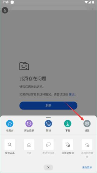 打开手机edge浏览器首页,点击底部“菜单”按钮。