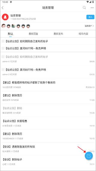 3、接着点击站务管理界面右下角的+号发布,选择“建议”进行申请,管理员会帮你删帖。