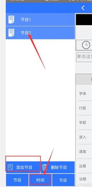 3、点击左边小箭头进入【节目】设置【添加节目】然后点击【时间】。