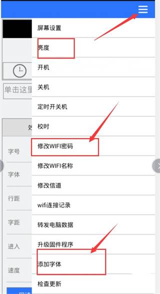 2、在选项菜单可以修改【亮度】【wifi密码】和【字体】等设置。
