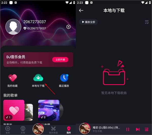 4、当用户下载歌曲后即可在我的页面中打开本地与下载查看已下载的歌曲。