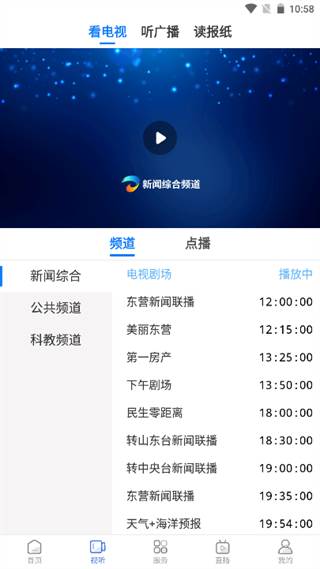 新闻页面:涵盖头条、政务、本地、看点、东营区、河口区、垦利区、广饶县、利津县等频道,让你随时随地浏览新闻。