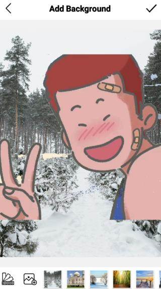 2、替换背景:内置上百套优质背景图库,更换想要的背景或选取相册自定义添加;