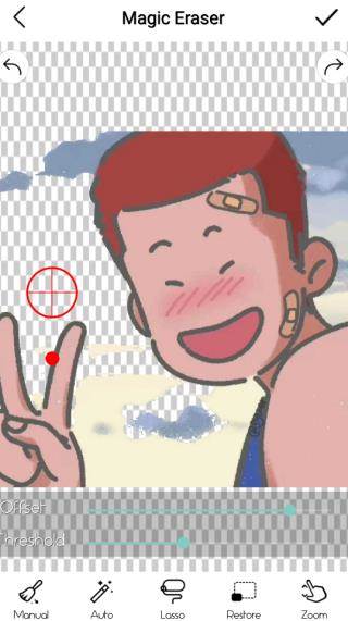 1、自动擦除相似的像素,大多数具有单一背景的照片可以一键完全擦除背景;