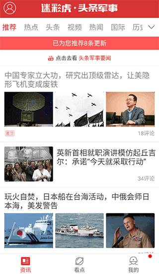 1、打开头条军事新闻最新版,资讯页面能看到很多军事资讯;