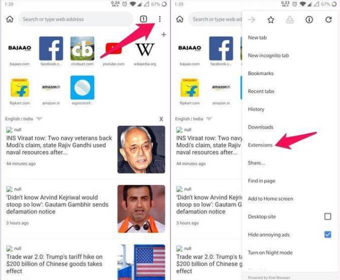 Kiwi浏览器可以浏览互联网,阅读新闻,观看视频和听音乐等任何浏览器都拥有的功能,