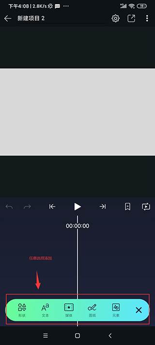 6、可以添加形状、文本、媒体(手机上的图片和音乐还有视频)、图纸、元素;