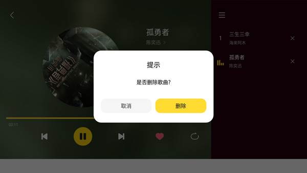 3、点击右边的删除按钮,会提示你是否要删除歌曲
