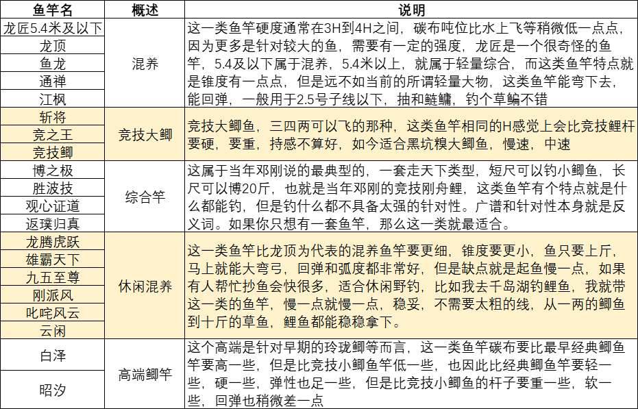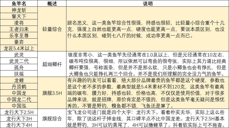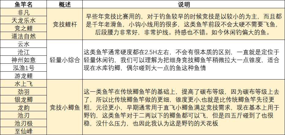 因为我不钓黑坑,也不喜欢太硬的鱼竿,也没怎么抖过太硬的鱼竿,所以,基本上都是5H以下的鱼竿的一些见解,每一款都来自个人实际体验。