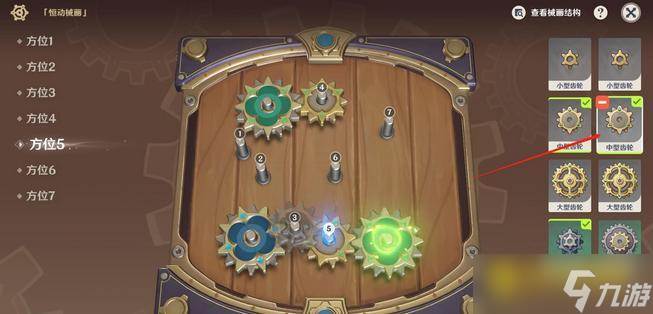 5、再到方位5上,放置剩余的一个中型齿轮。