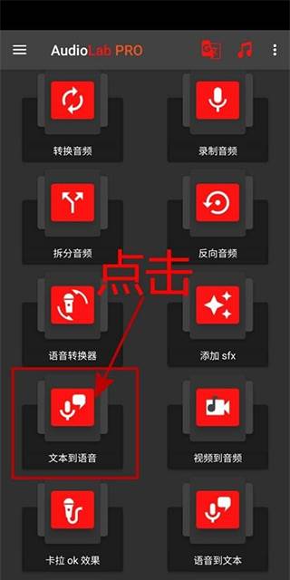 2、在AudioLab软件的首页中,点击“文本到语音”。
