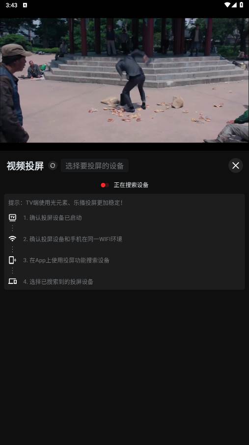 2.打开电视端,确保手机和电视在同一wifi环境。选择TV设备名称连接。